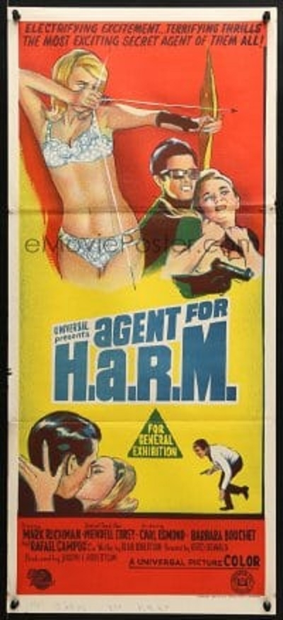 Agent For H.A.RM. (1966) Australian daybill, and a New Zealand Censored version of the same daybill design that was distributed there.