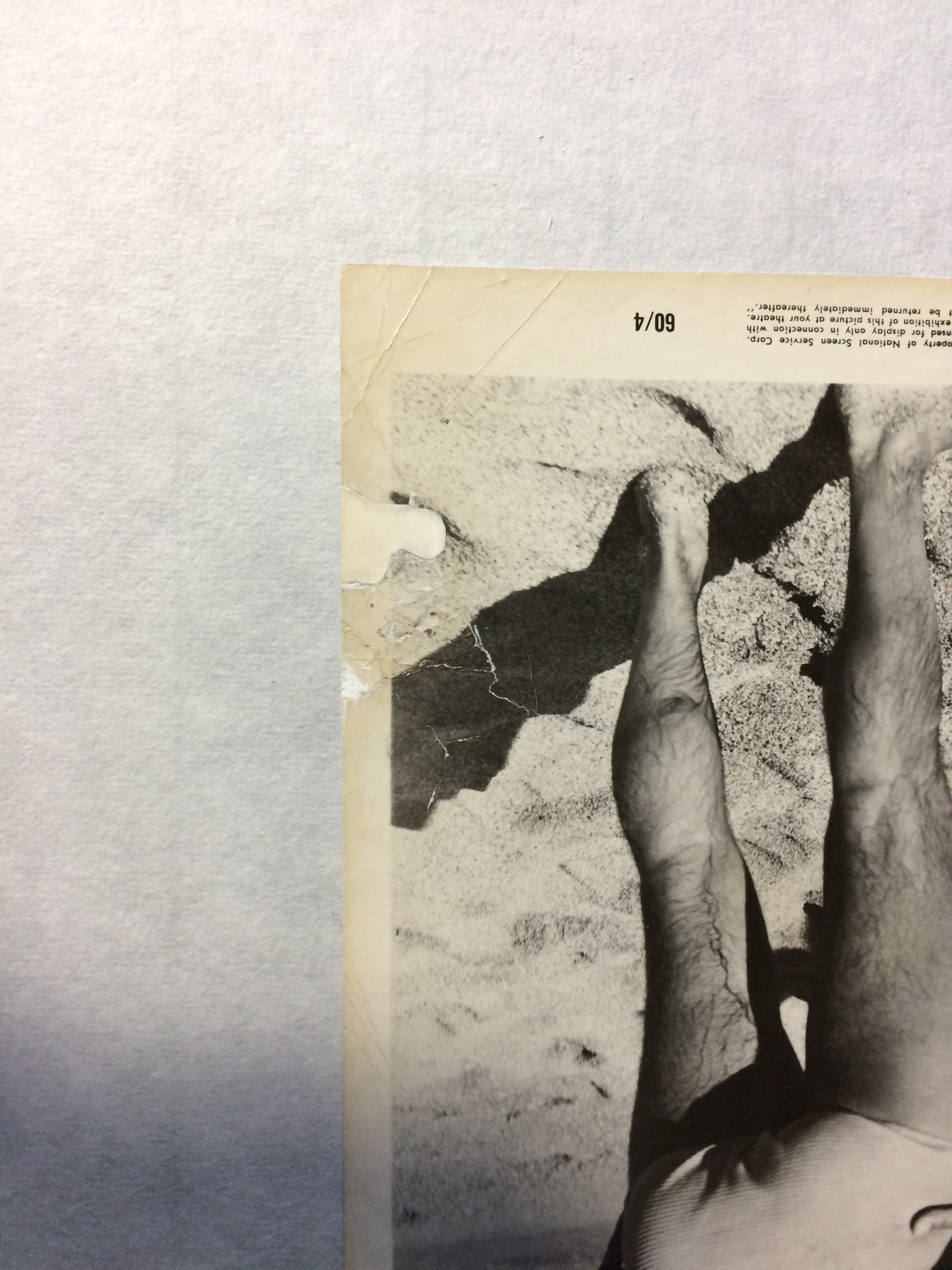 I guess I didn't save the original photos. But essentially this is a classic still from Suddenly, Last Summer but the right lower side had been torn and repaired with tape on the back. I got it pretty cheap to conduct this experiment - paperbacking it and attempting to infill the missing portion.