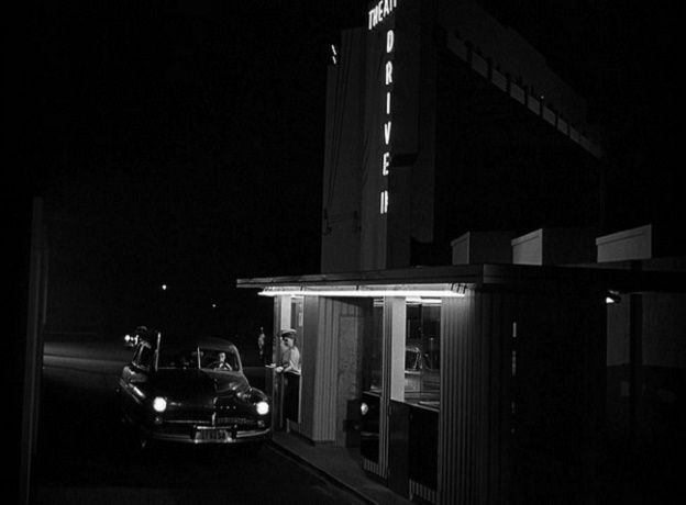 76 clue is the Drive-in theatre was screening a war film that hadn't yet been released in the U.S.A..