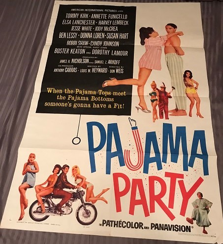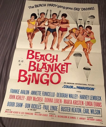 The third in the series...  This one also features go-go dancing Candy Johnson (on the poster!). This flick featured Frankie Avalon in a dual role (as surfer Frankie and as British singing sensation, the Potato Bug!) and the fad the gang is into is drag racing. Don Rickles returns, but this time is called Big Drag. Little Stevie Wonder comes back  and there is an appearance by bald surf band The Pyramids. Keenan Wynn is also in it and Boris Karloff pops up for a cameo at near the end. One of the daughters from "Pettycoat Junction", Meredith MacRae, is also in this, but is uncredited on the poster.