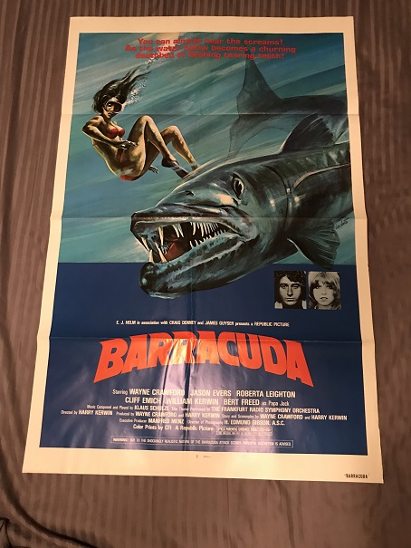I got this for BARRACUDA, of course. THE INGLORIOUS BASTARDS is NOT related to the similarly named, but alternately spelled flick by Quentin Tarantino.  I had this hanging on the wall above the bathtub in my guest bathroom before I had a shower put in. Ha!