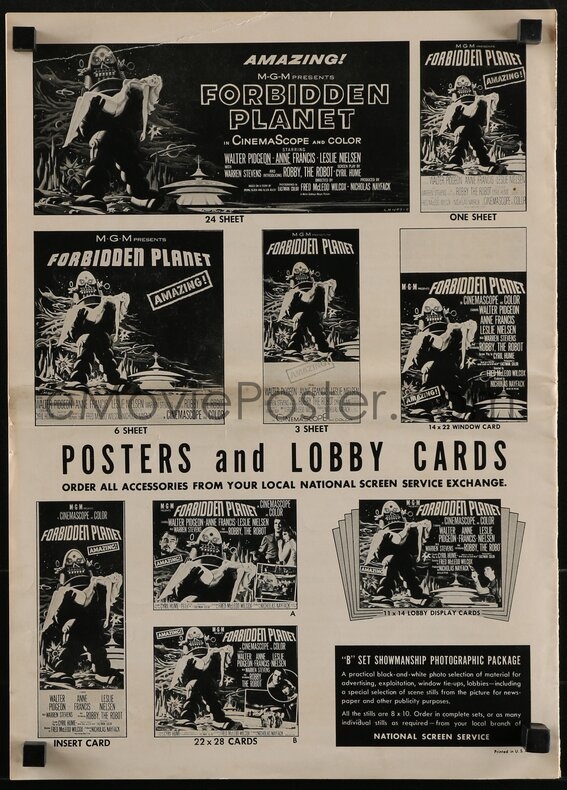 Not every production had the budget for large-scale billboard advertising. And in the specific case of Forbidden Planet, I haven’t been able to find any evidence that a 24-sheet was actually produced. That doesn’t mean one didn’t exist, of course. I’m perfectly willing to remain humble about that.