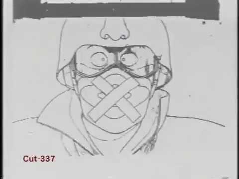 Aside from the fact that it looks pretty cool and is phenomenally well drawn, the douga features a lot of interesting production notes used to guide the colourists who hand painted each cel. I've been told the two little 'x's above the feet were placed there by Otomo, who was known to use a red pencil.