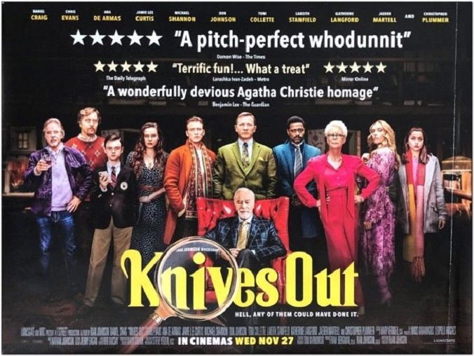Correct and well answered. 100% agree that it is a great mystery film. Ana de Armes and Daniel Craig appear in the scene below. I like Daniel Craig's distinctive drawl that he used in the film.